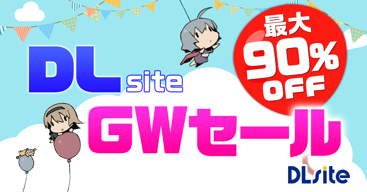 二次元コンテンツのダウンロード販売サービス『DLsite』(株式会社エイシス、所在地:東京都千代田区、代表取締役:明石耕作)は、個人のクリエイターが手掛ける作品を中心にお取り扱いしている売り場において、GWセールをスタートいたしました。期間中、対象作品が最大90%オフでお求めいただけます。