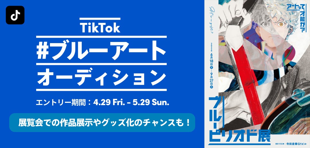 ブルーピリオド展製作委員会は、「ブルーピリオド展~アートって、才能か?~」(以下ブルーピリオド展)の開催に伴い、新しい才能に光を当て、アート界の未来を応援する『ブルーアートプロジェクト』を始動させます。また、2022年4日29日(金)~5月29日(日)の間、ショートムービープラットフォーム「TikTok(ティックトック)」と共に、矢口八虎のように悩みもがく、若手アーティストを発掘するオーディション『ブルーアートオーディション』を開催し、審査を経て優秀作品として選ばれた作品を同展にて展示します。
