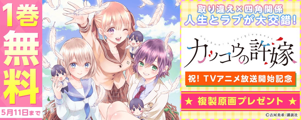 2022年4月23日よりTVアニメ放送開始の「カッコウの許嫁」の作者・吉河美希先生の直筆為書き入り複製原画が当たるプレゼントキャンペーンを開催中!Twitterで『まんが王国』公式アカウントをフォロー&該当ツイートをリツイートで応募完了!なお、ご参加には『まんが王国』無料会員登録が必要です。