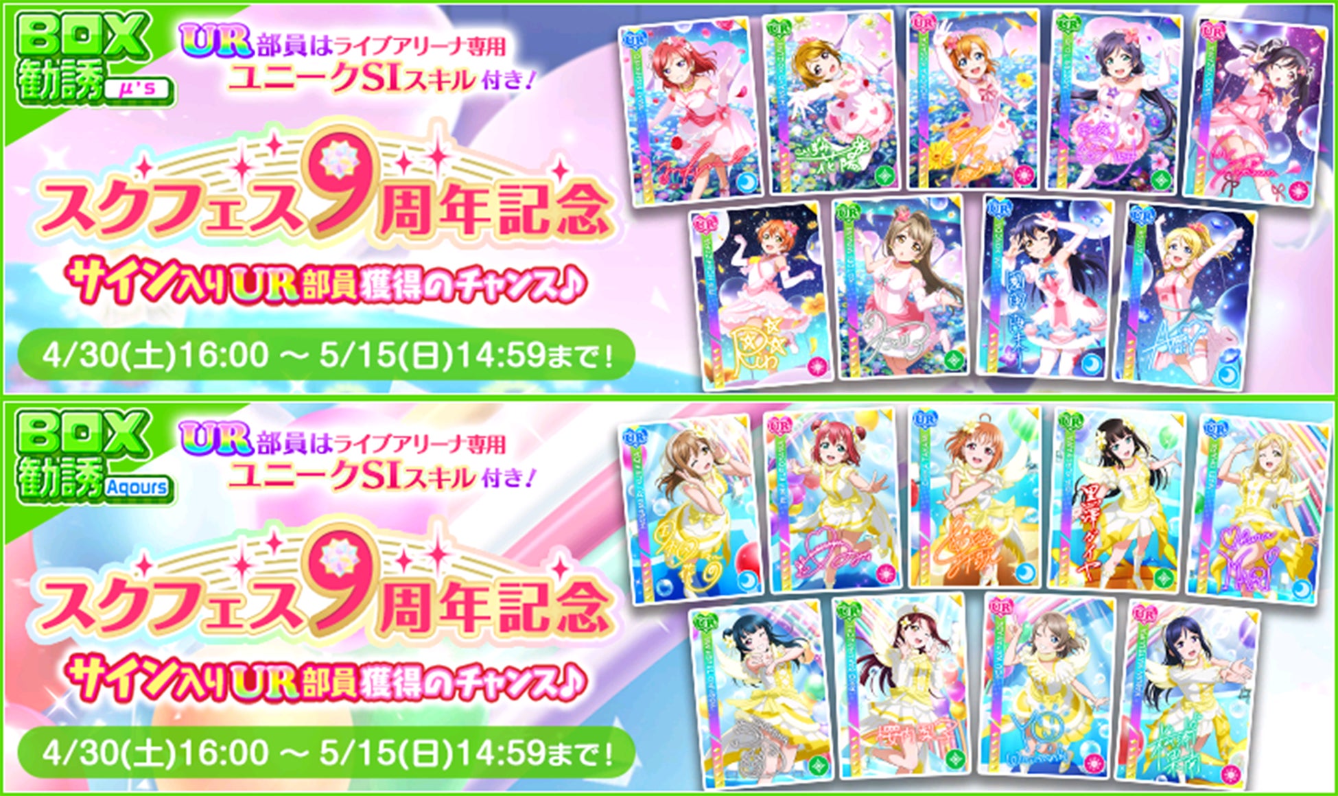 - スクフェス9周年記念SR以上確定BOX勧誘〜μ’s〜