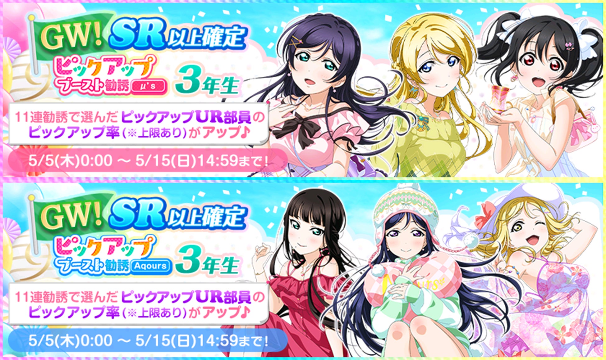 - GW!SR以上確定ピックアップブースト勧誘〜μ’s〜2年生