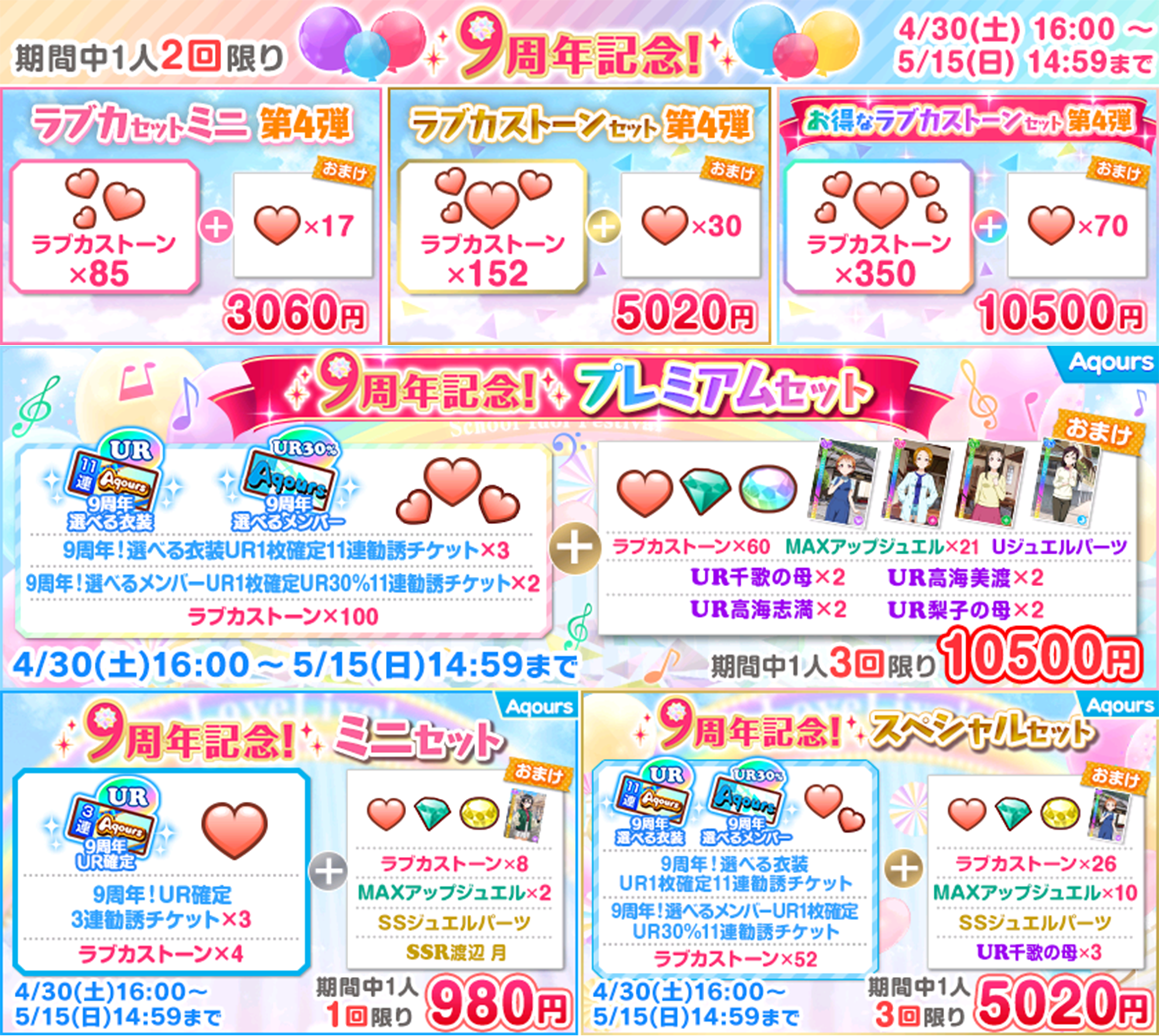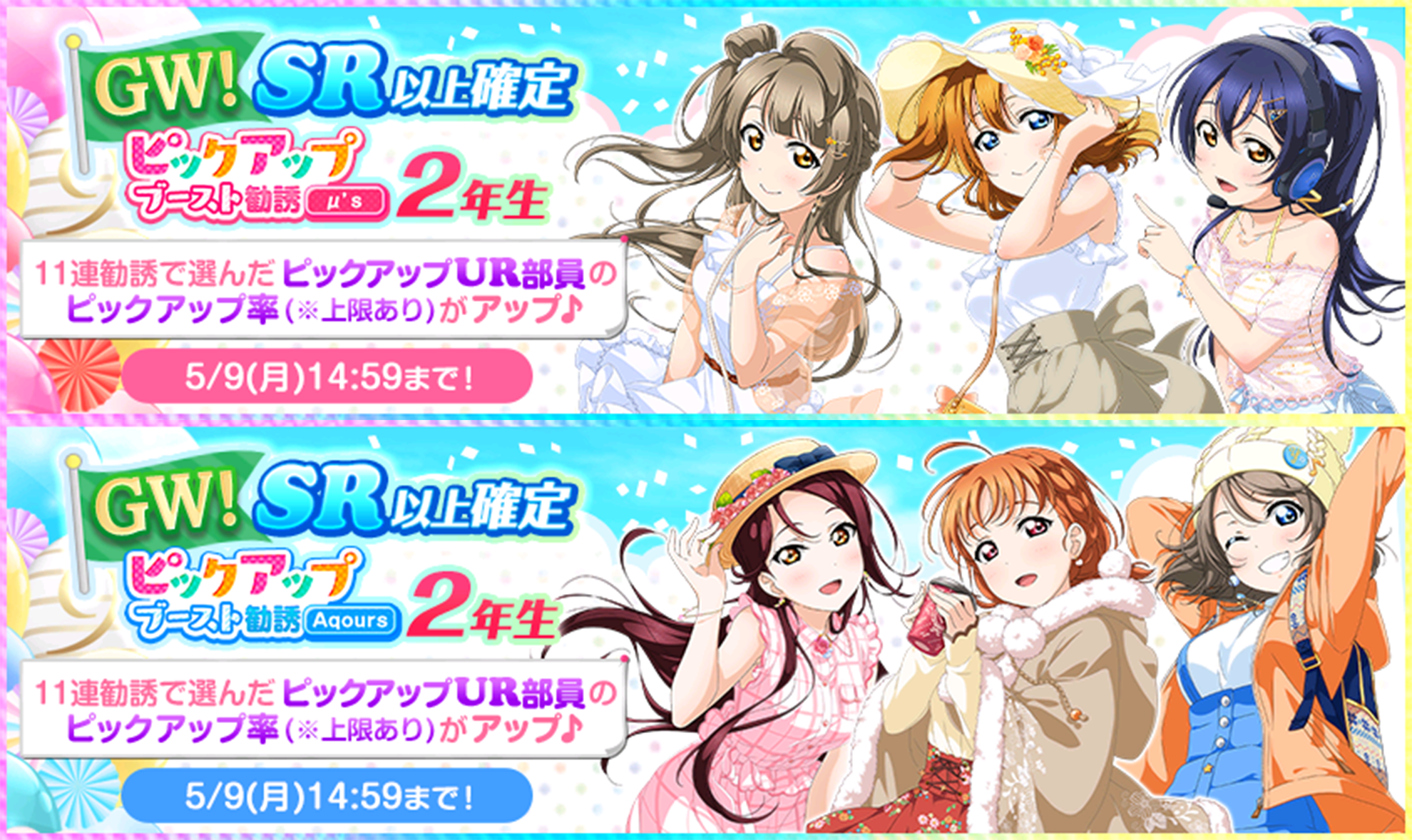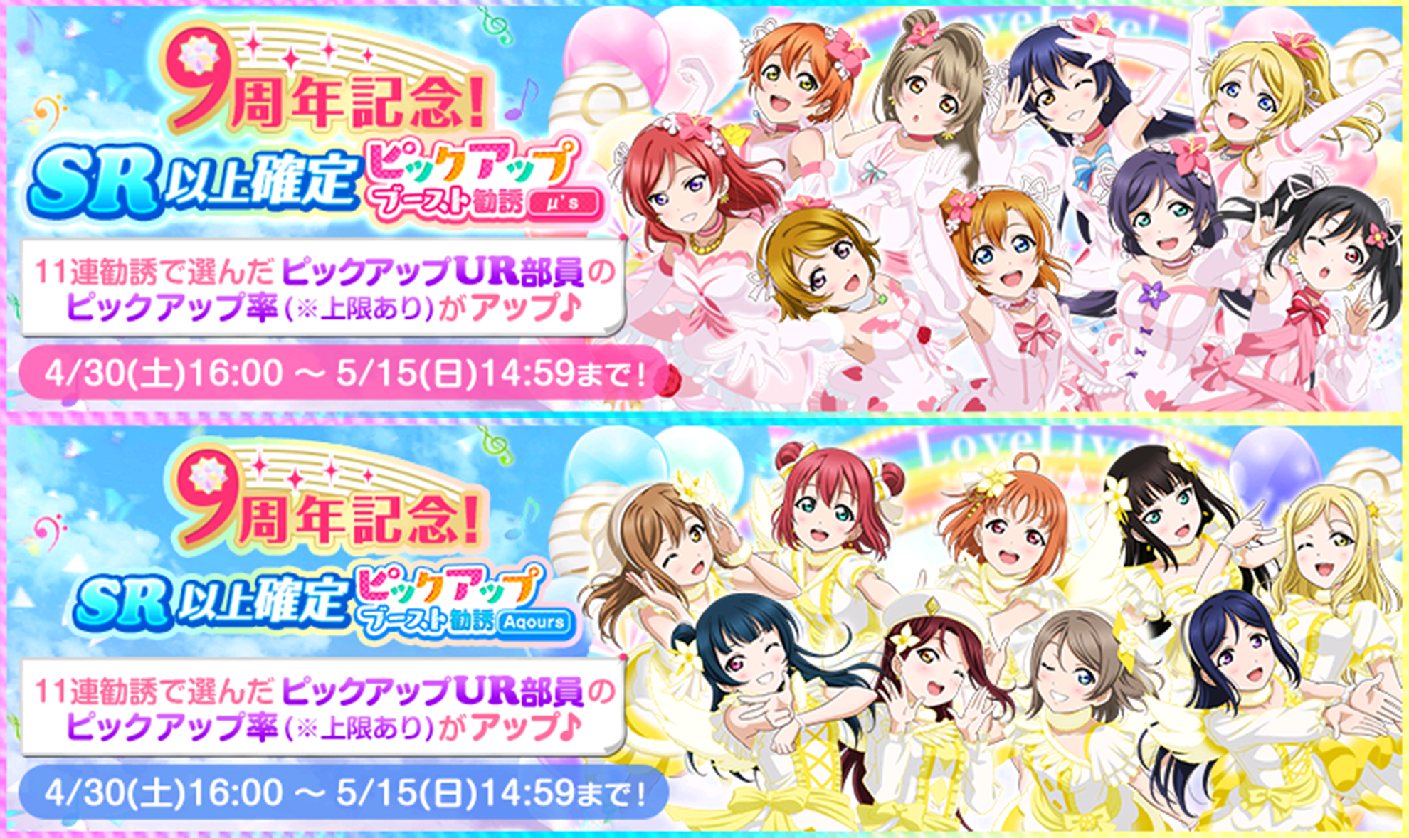 - 9周年記念!SR以上確定ピックアップブースト勧誘〜Aqours〜