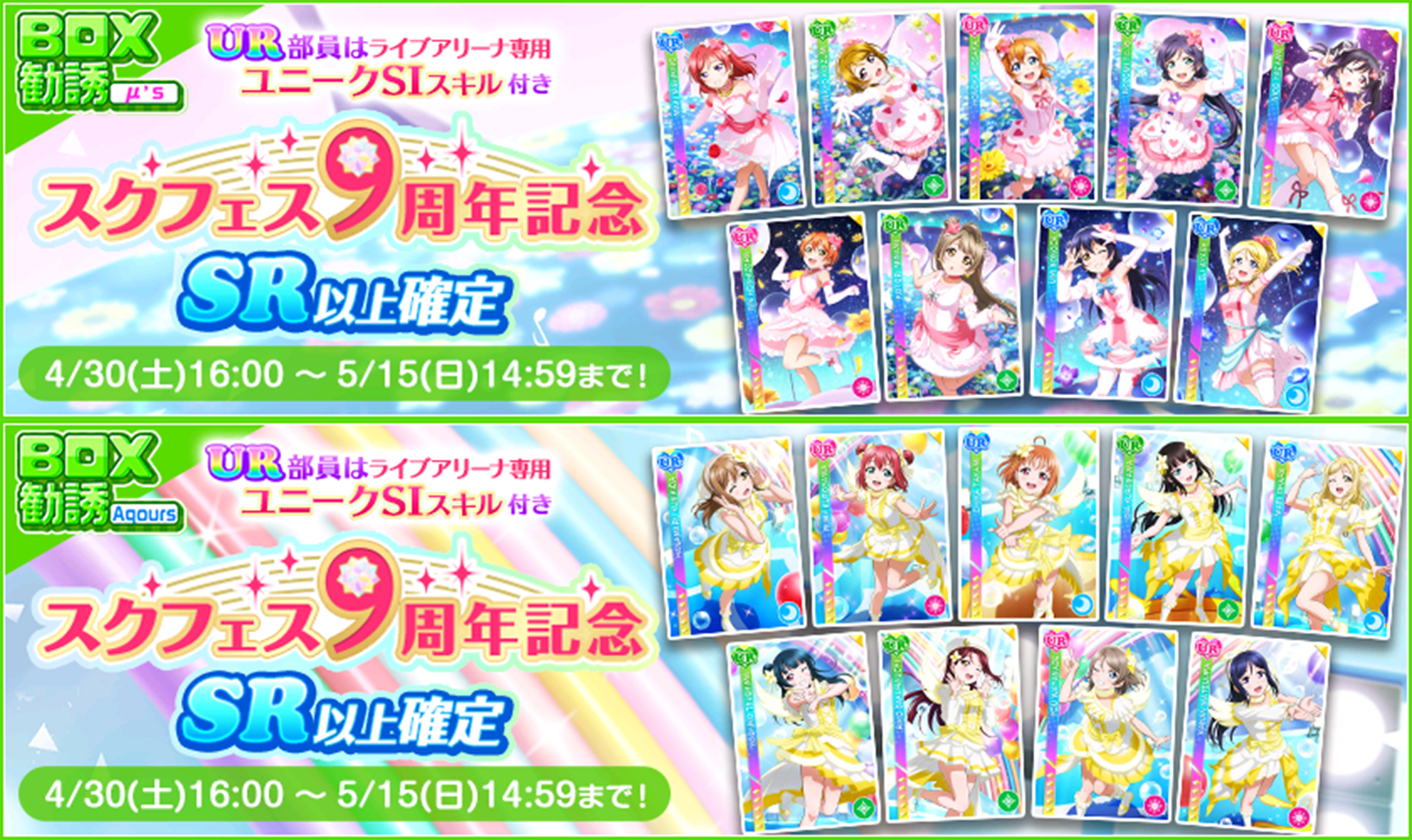 - スクフェス9周年記念SR以上確定BOX勧誘〜μ’s〜