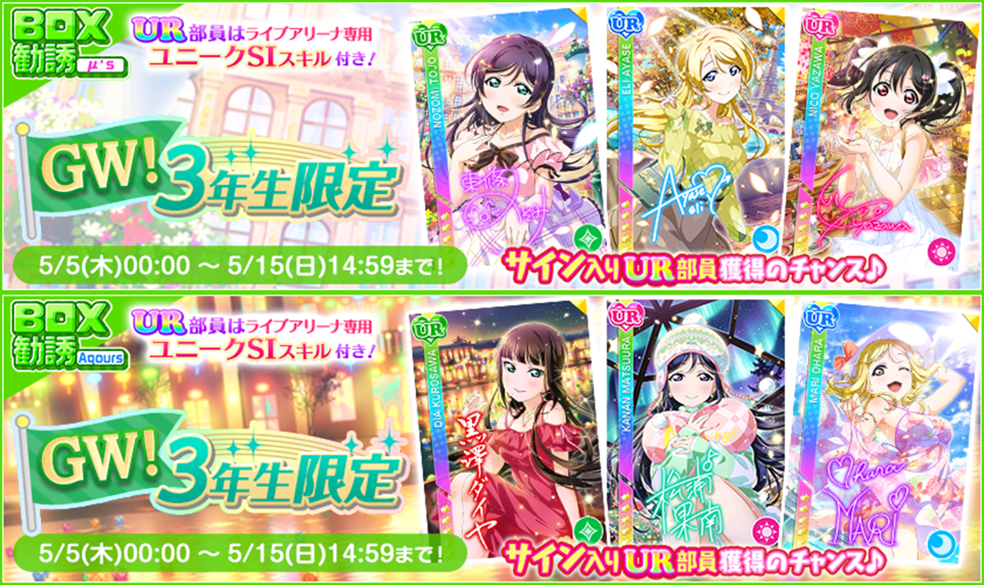 - GW!SR以上確定BOX勧誘〜μ’s〜3年生