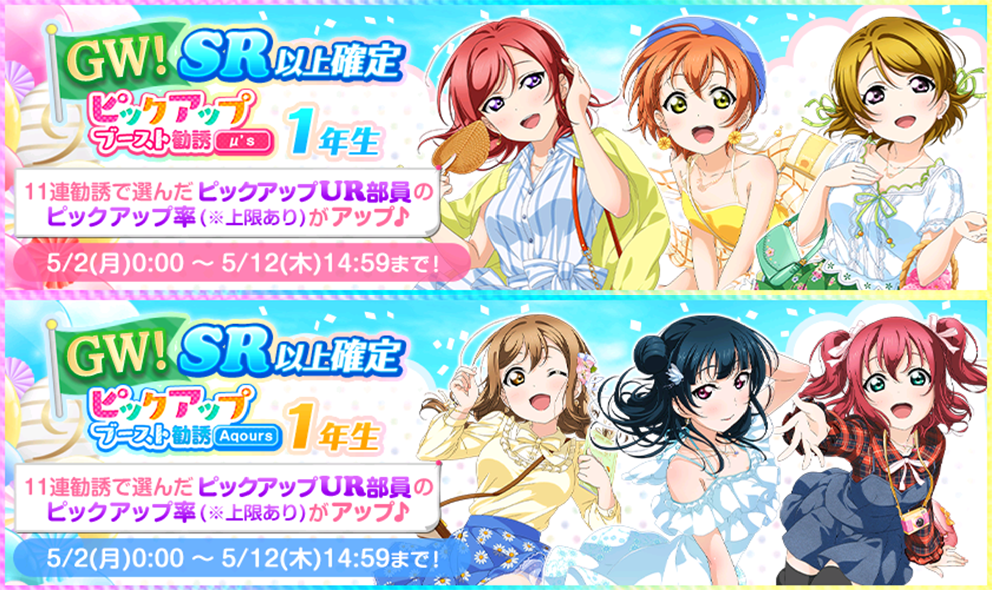 - GW!SR以上確定ピックアップブースト勧誘〜Aqours〜1年生