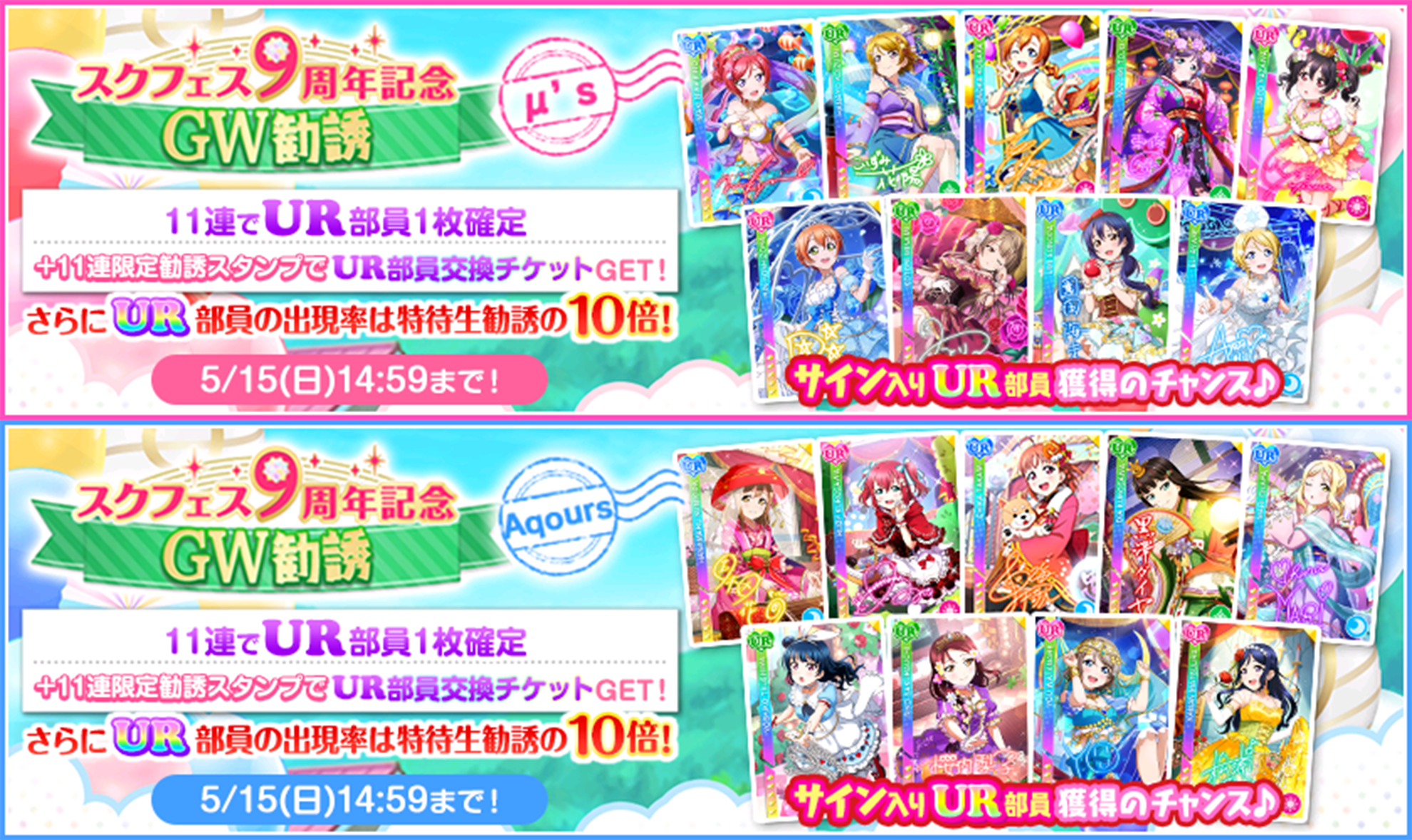- スクフェス9周年記念GW勧誘〜Aqours〜
