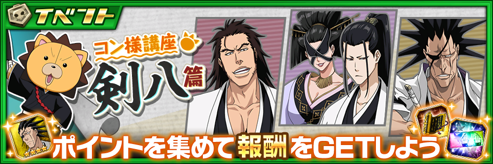 - 小説SAFWYコラボキャンペーン開催!「小説SAFWYコラボステップアップガチャ―剣八の系譜―」では3人の剣八が登場!