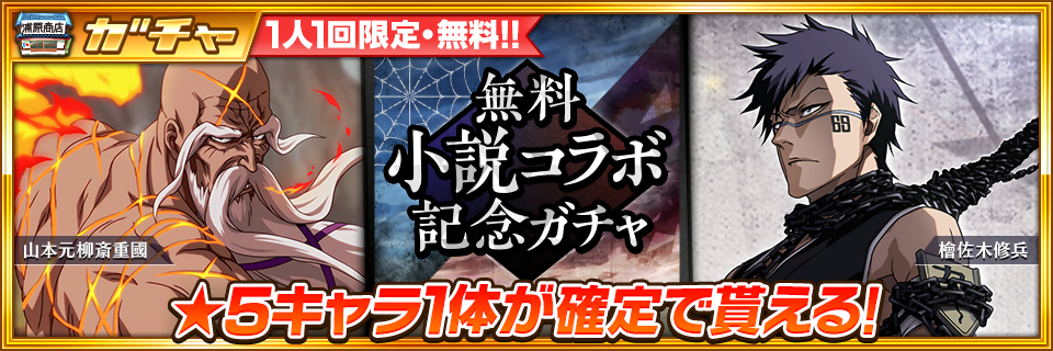 本コラボでは小説SAFWYコラボver.の更木剣八、痣城剣八、刳屋敷剣八が登場するガチャや、コラボ開催を記念した無料ガチャやログインボーナスなどお得なキャンペーンもお楽しみいただけます。