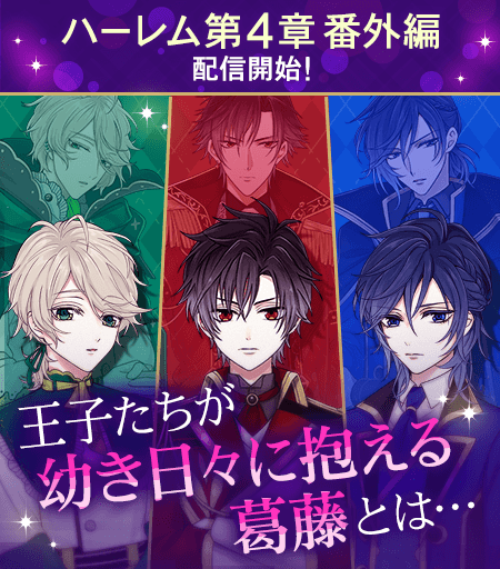 2022年4月に配信を開始したハーレムルート第4章・番外編では、王子たちの子供のころのストーリーを展開しております。