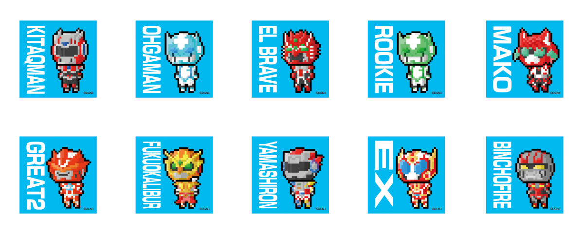 特典:期間中、会場にてドゲンジャーズグッズを1,500円(税込)以上お買い上げ毎にドゲンジャーズドット絵シールを1枚ランダムでプレゼント