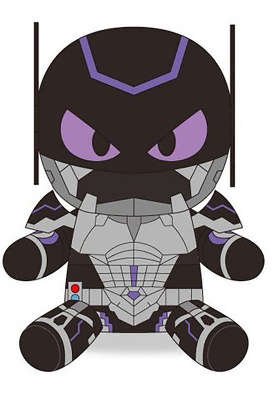ちょこんお座り、ちょうど良いサイズのヤバイ仮面のぬいぐるみです。