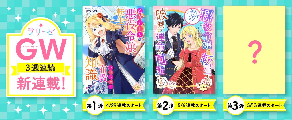コミックブリーゼGW3週連続新連載!第3弾は5/13連載スタート!お楽しみに!