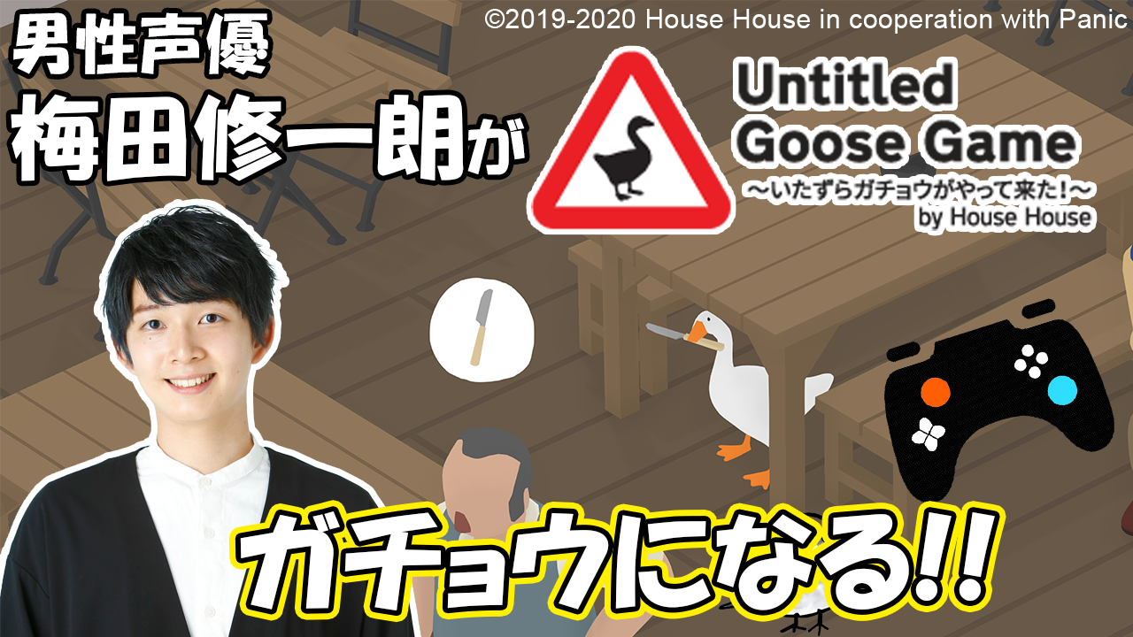 初回配信では、梅田さんはガチョウになって人間にイタズラをするゲーム『Untitled Goose Game 〜いたずらガチョウがやって来た!』をプレイする予定です。