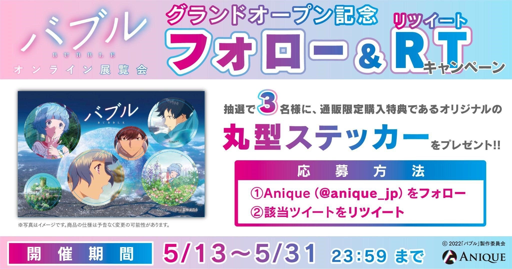 Anique株式会社(本社:東京都渋谷区、代表取締役:中村太一、以下「Anique(アニーク)」は、同社が運営するサービス「Anique」にて、映画『バブル』公開を記念し、オンライン展覧会および限定グッズ販売企画を5月13日より開始いたしました。