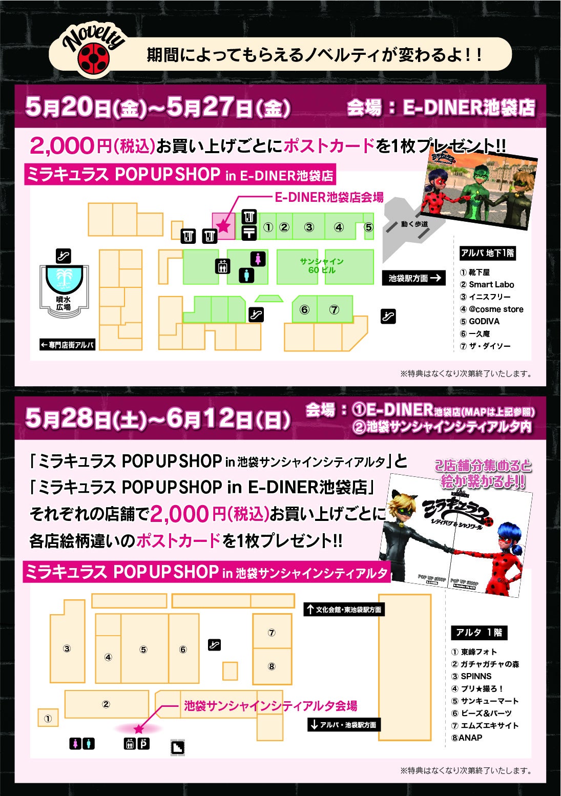 「ミラキュラス POP UP SHOP in E-DINER 池袋」配布デザイン