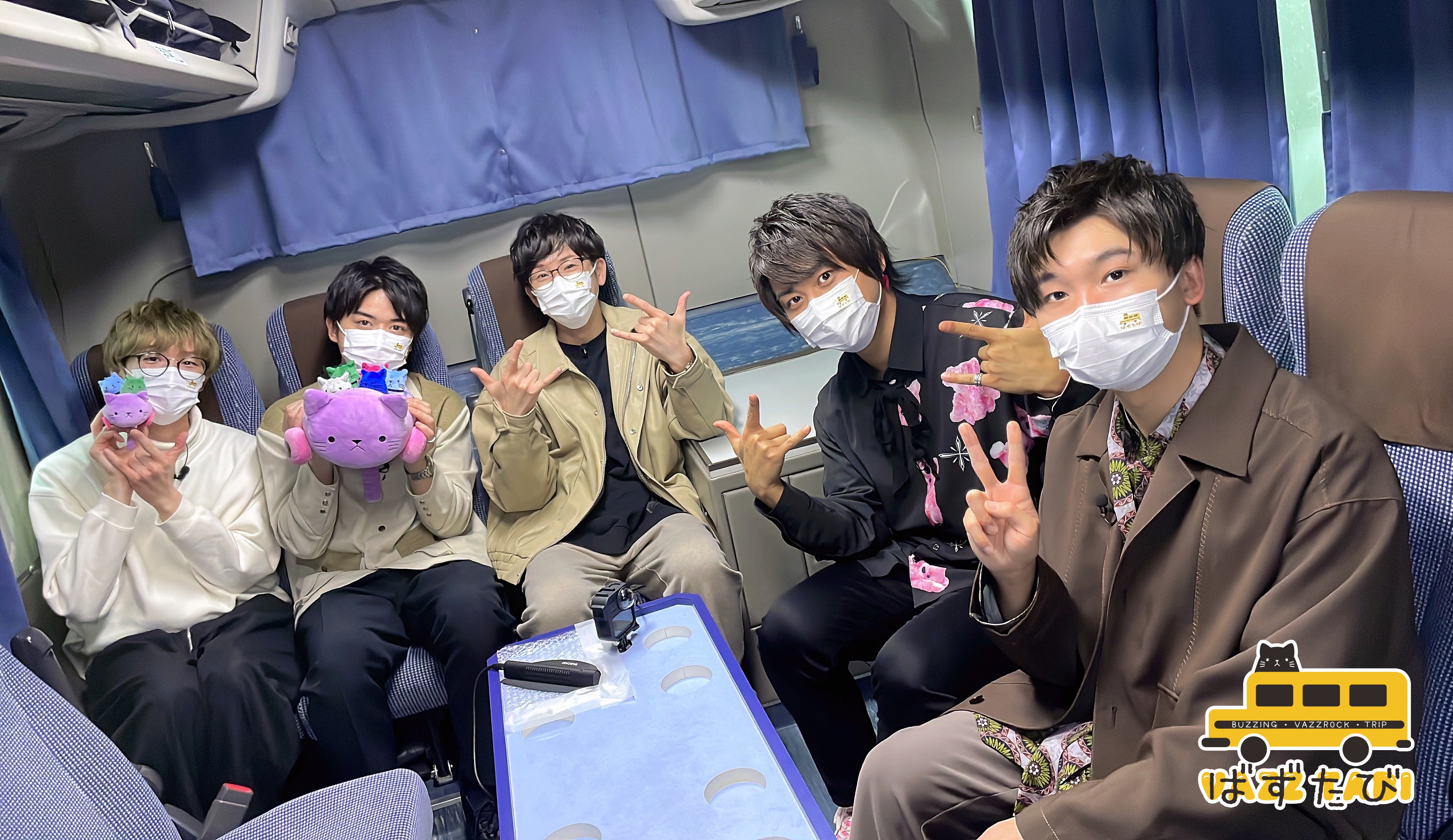 VAZZROCKシリーズでキャラクターボイスを担当する豪華声優陣が、ドライブ・グルメ・ゲームなど大人のバス旅を満喫しながら、バズロについて、バズアニについてをたっぷり語ります。