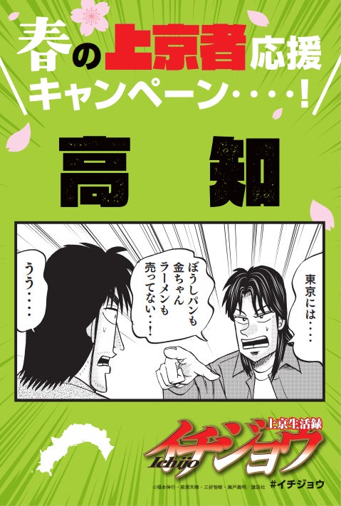発売に際し、「春の上京者応援キャンペーン」と題した書店店頭フェアを実施します。対象書店で1~4巻を購入した方へ、限定イラストカードを配布。カードには、47都道府県からの上京者に向けたイチジョウの一言アドバイスが記されており、全47種類をランダムで配布する予定です。