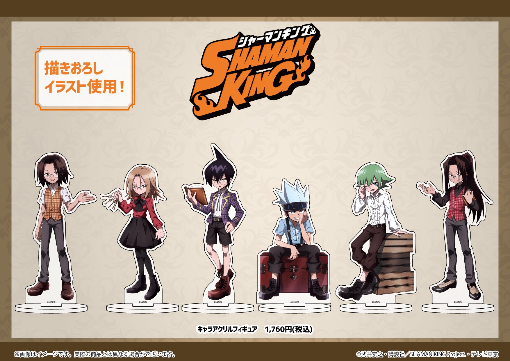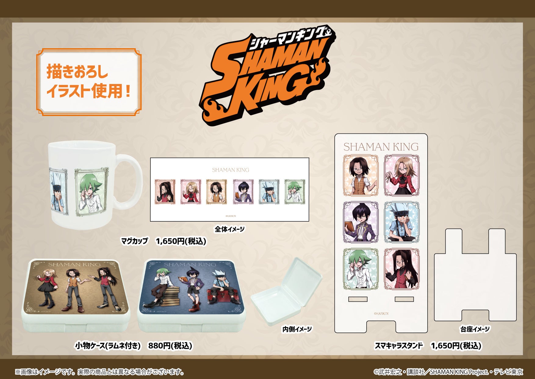 オンラインミュージアム開催にあわせてeeo StoreではTVアニメ「SHAMAN KING」の限定グッズをはじめ、たくさんの関連商品を販売しています。また、グッズを税込み2,200円以上ご購入の方には描き下ろしイラスト使用のポストカードの特典も。