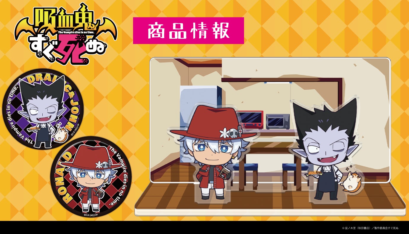 【きゃらON!TVアニメ「吸血鬼すぐ死ぬ」商品ページ】https://www.charaon.jp/SHOP/130420/193389/list.html