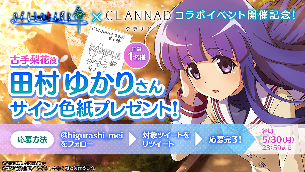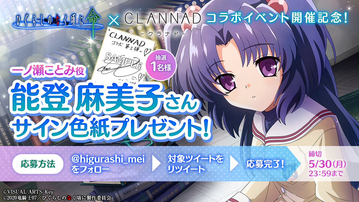 『CLANNAD』とのコラボ第2弾開催を記念して、「声優直筆サイン色紙」を抽選でプレゼント!