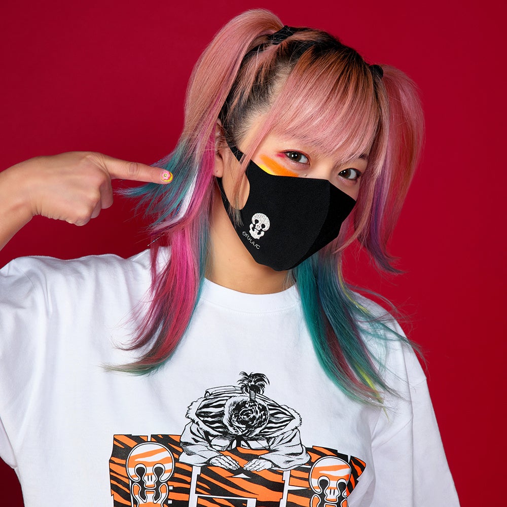 髑髏の馬印がワンポイント刺繍された傾いたマスク。