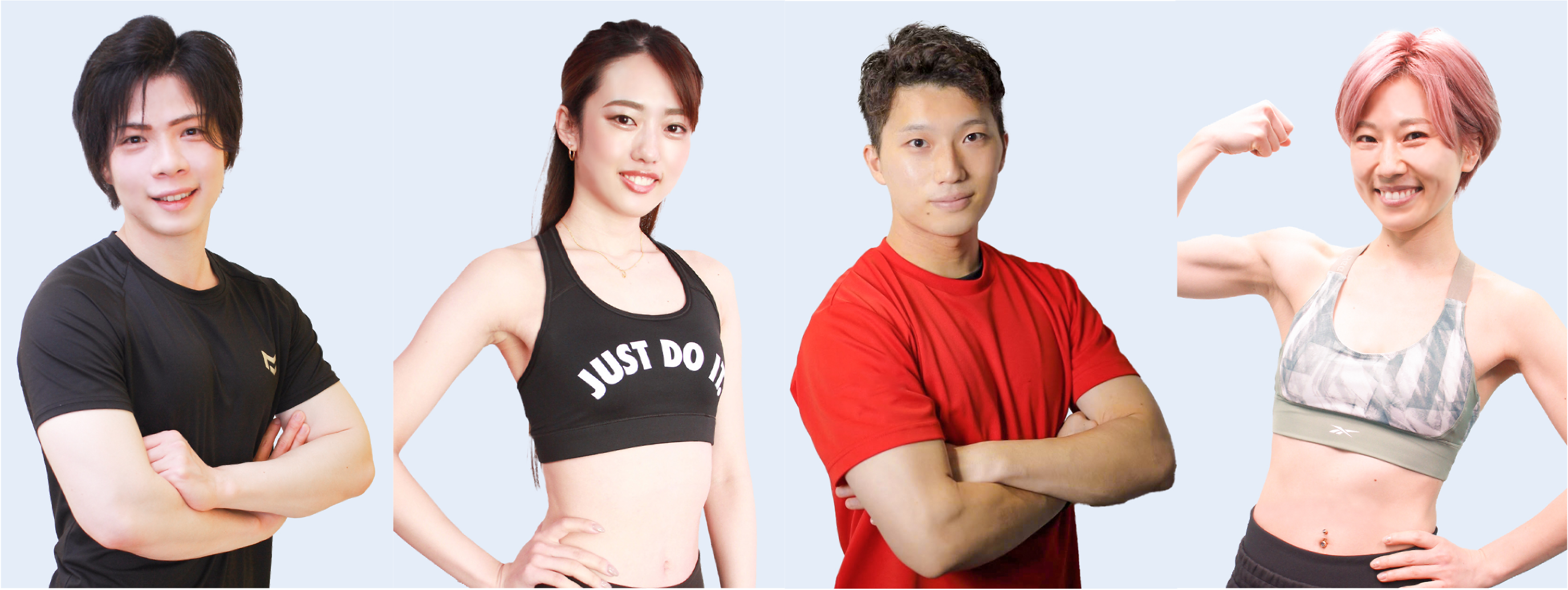 (左から、指導トレーナー:Daiki、SAINA、FUMI、おまぁ)