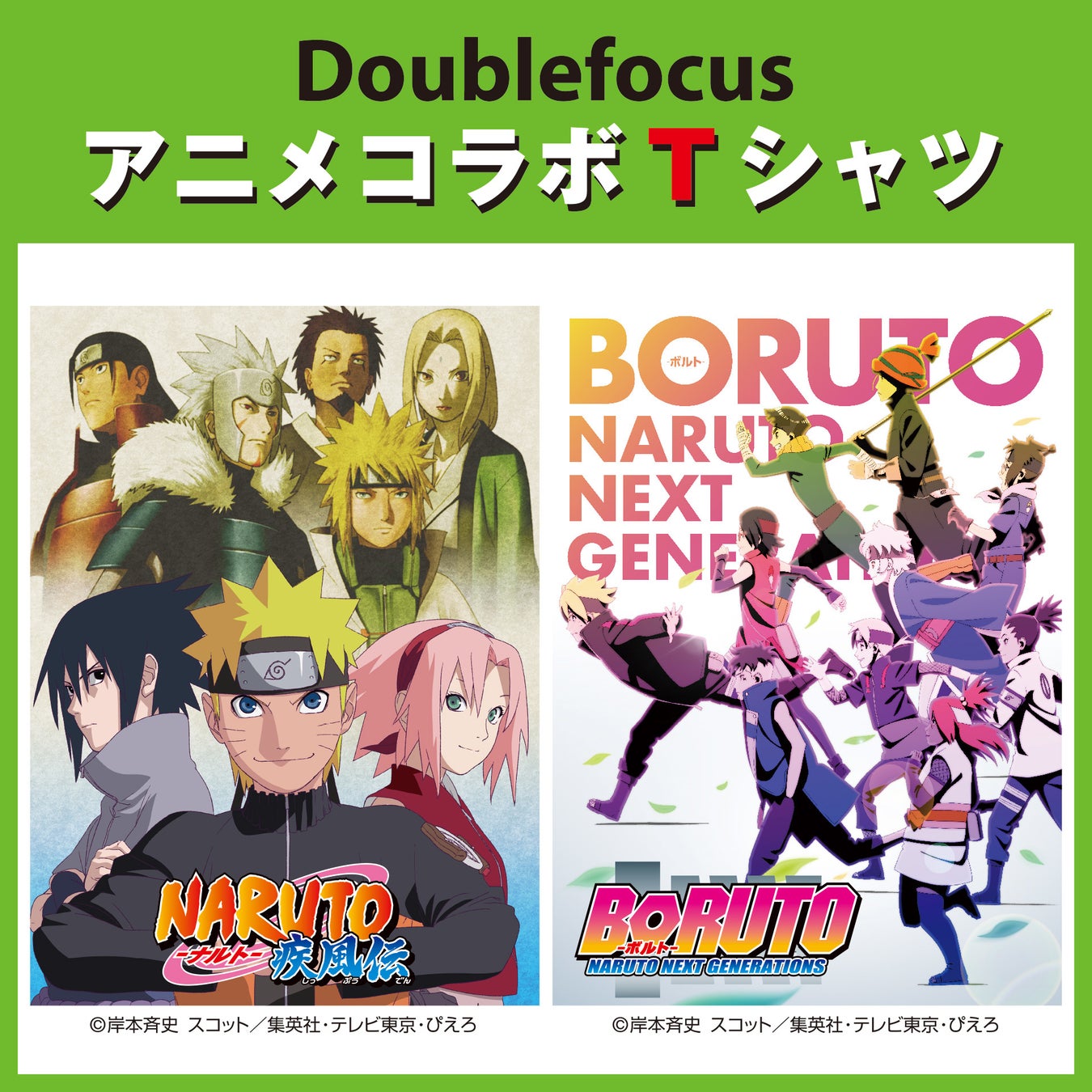 イオンのファッションブランド「Doublefocus(ダブルフォーカス)」は、5月27日(金)、「イオン」「イオンスタイル」約360店舗※1)にて、大人気アニメ『NARUTO-ナルト-』『NARUTO-ナルト- 疾風伝』『BORUTO-ボルト- NARUTO NEXT GENERATIONS』の3作品のTシャツ合計10種類を発売します。またイオンの公式通販「イオンスタイルオンライン」では、予約受付を行います。