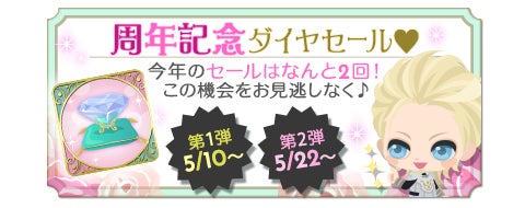 周年を記念し、ダイヤ(アプリ内アイテム)がお得に手に入るセールを実施しております。