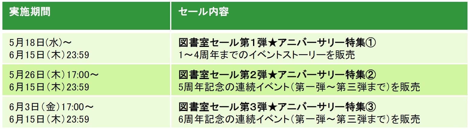 過去のイベントストーリーをもう一度読み直すことが出来る、図書室のセールを開催しております。