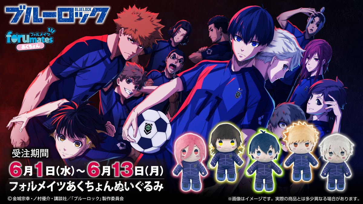 10月より放送がスタートするTVアニメ『ブルーロック』より、潔世一、蜂楽廻、國神練介、千切豹馬、凪誠士郎がかわいいデフォルメぬいぐるみ「フォルメイツあくちょんぬいぐるみ」になりました。