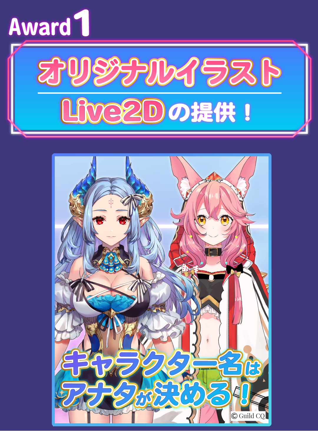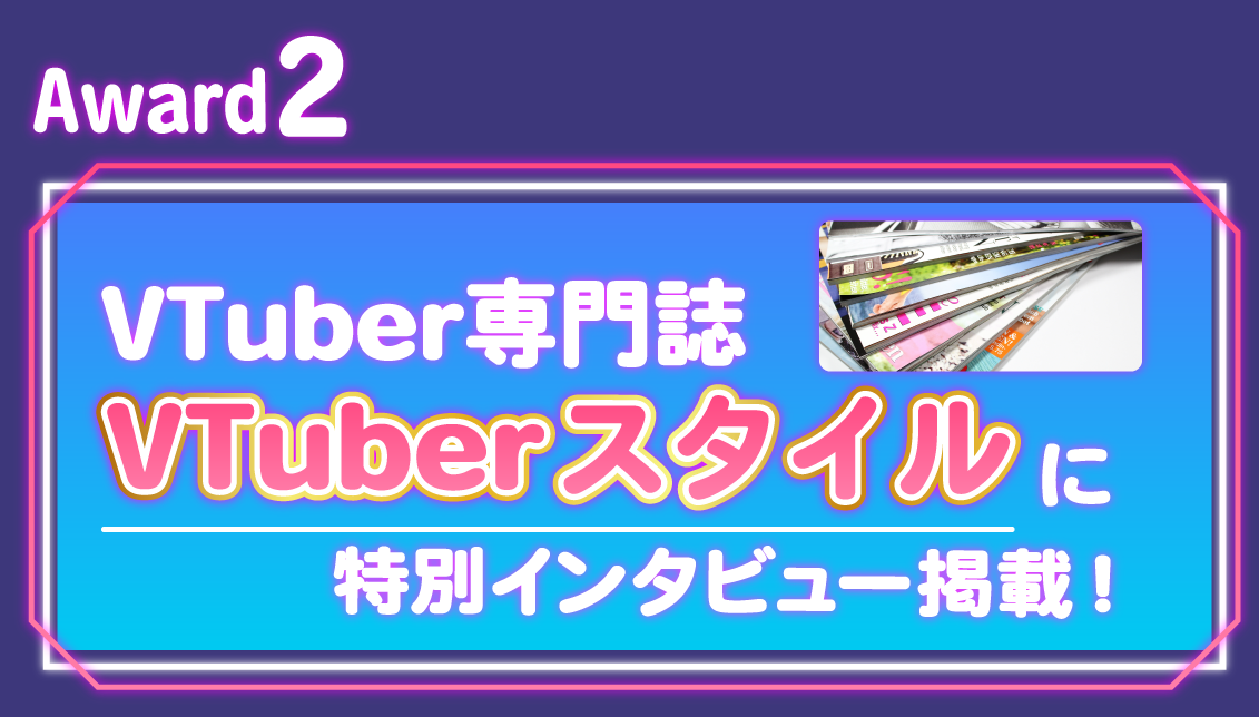 オーディション合格者2名には、専用のキャラクター、配信用機材だけでなく、VTuber専門誌「VTuberスタイル」へのインタビュー掲載や都内街頭ビジョンでのプロモーション、人気VTuberとのコラボレーションなど豪華特典を用意。大注目の大型新人発掘オーディションです。