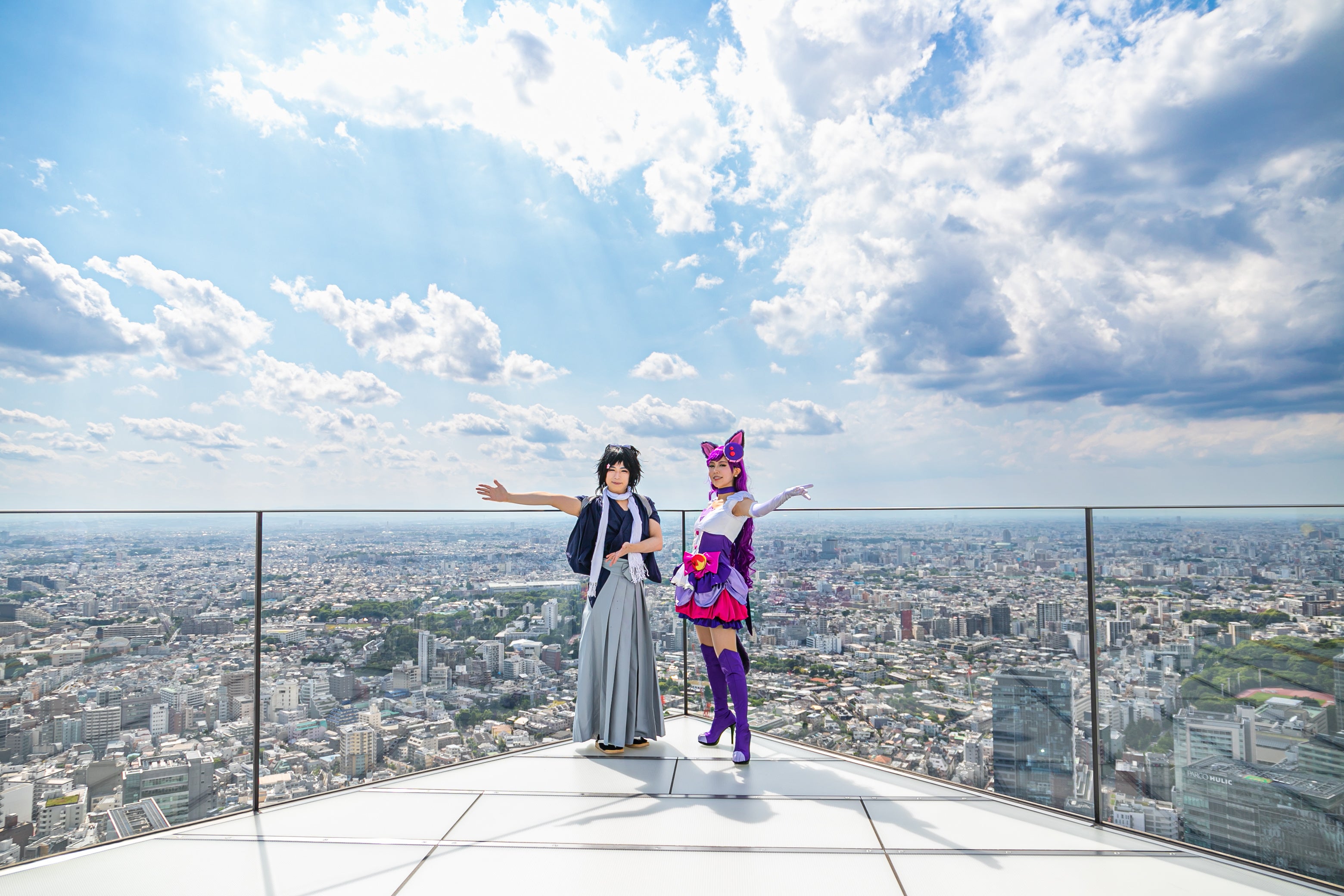渋谷の街を清掃後、コスプレイヤーは渋谷で一番高い「渋谷スカイ」や、ヒカリエのパブリックスペース「ヒカリエデッキ」で綺麗になった渋谷を眺めながらコスプレ撮影を楽しみました。