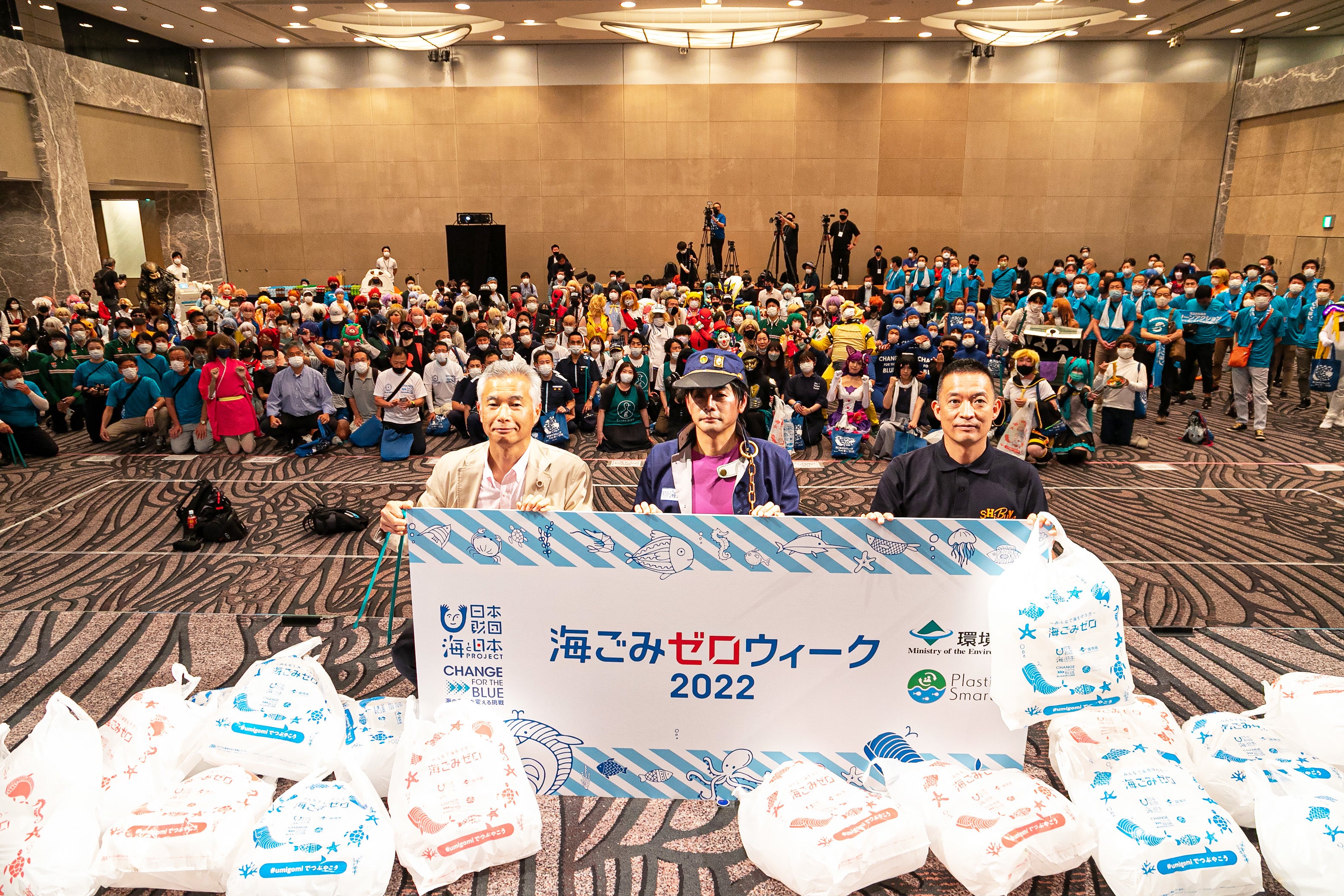コスプレ海ごみゼロ実行委員会(委員長:天野 知寿子)は、日本財団(会長:笹川 陽平)と環境省が実施する海洋ごみ対策を目的とした全国一斉掃除キャンペーン「春の海ごみゼロウィーク」のキックオフイベントとして、「コスプレde海ごみゼロ大作戦!!2022 at 渋谷」を2022年5月28日(土)にセルリアンタワー東急ホテル、渋谷センター街、渋谷スカイにて実施しました。イベント当日は、様々なコスプレファンが集い、ごみ拾いとコスプレ撮影を楽しみました。ごみ拾いに参加した人数は総勢約400名にのぼり、渋谷周辺で回収したごみの量は70リットルのごみ袋が52個分におよびました。