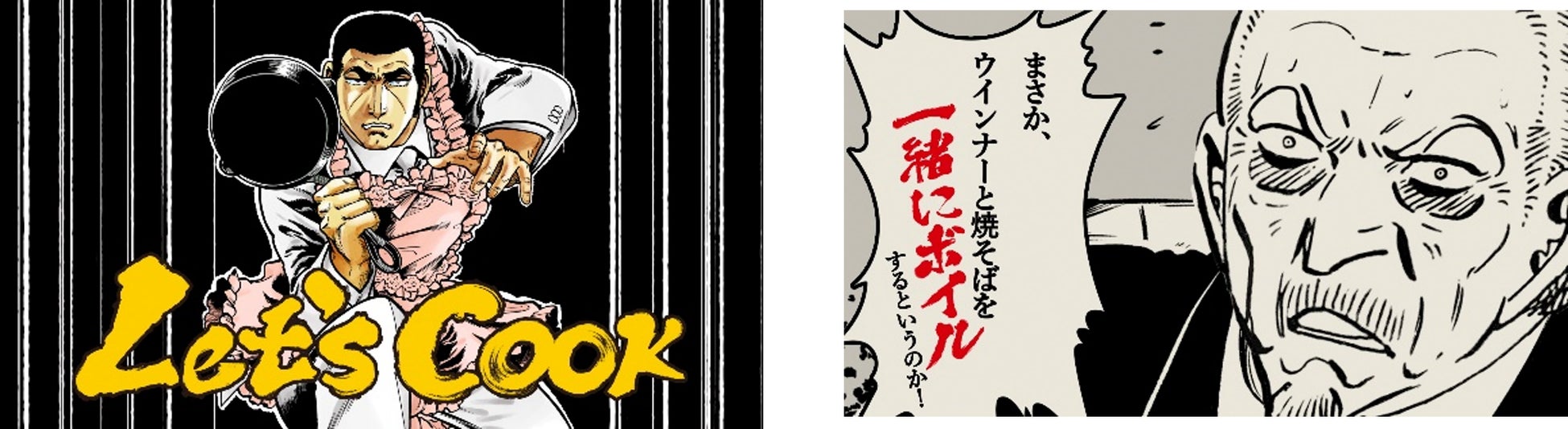 ヒューム卿のつべこべうるさいオーダーに対し、デューク東郷は「日清焼そば」と「シャウエッセン」を一つのフライパンで一緒にゆでて作るシンプルかつ大胆な調理方法で、“ハードボイルドウインナー焼そば” をクールに仕上げていきます。