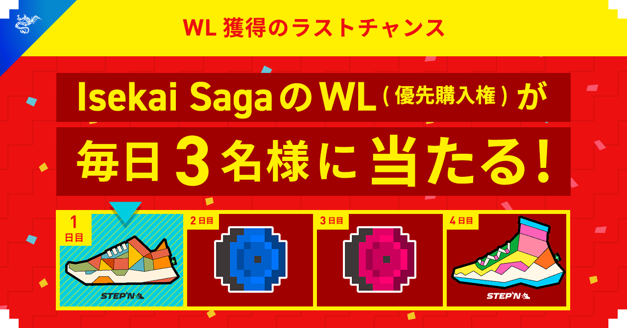 毎日WLが3名様、日替わりで1名様にSTEPNのスニーカーNFT、10名様に 「レプリカ・オタクコイン」が当たりますのでお見逃しなく。