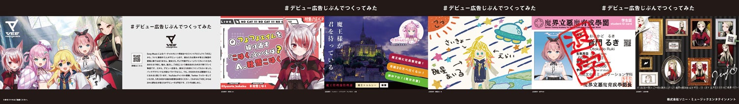 「音門るき」、「九条林檎」、「秋雪こはく」、「トゥルシー・ナイトメア」、「雛星あいる」のタレント5名が、自らデザインを考えており、個性が光る広告となっています。