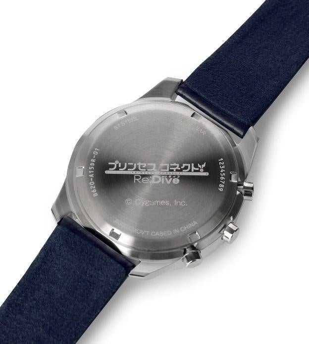 文字盤全体を使ってペコリーヌの衣装をイメージし、12時の位置にはペコリーヌのティアラを、銀色のレリーフであしらいました。