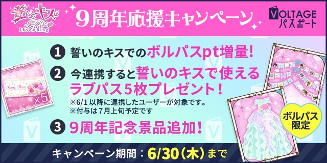 - 「VOLTAGEパスポート」にて「誓キスLR」9周年応援キャンペーン開催中!