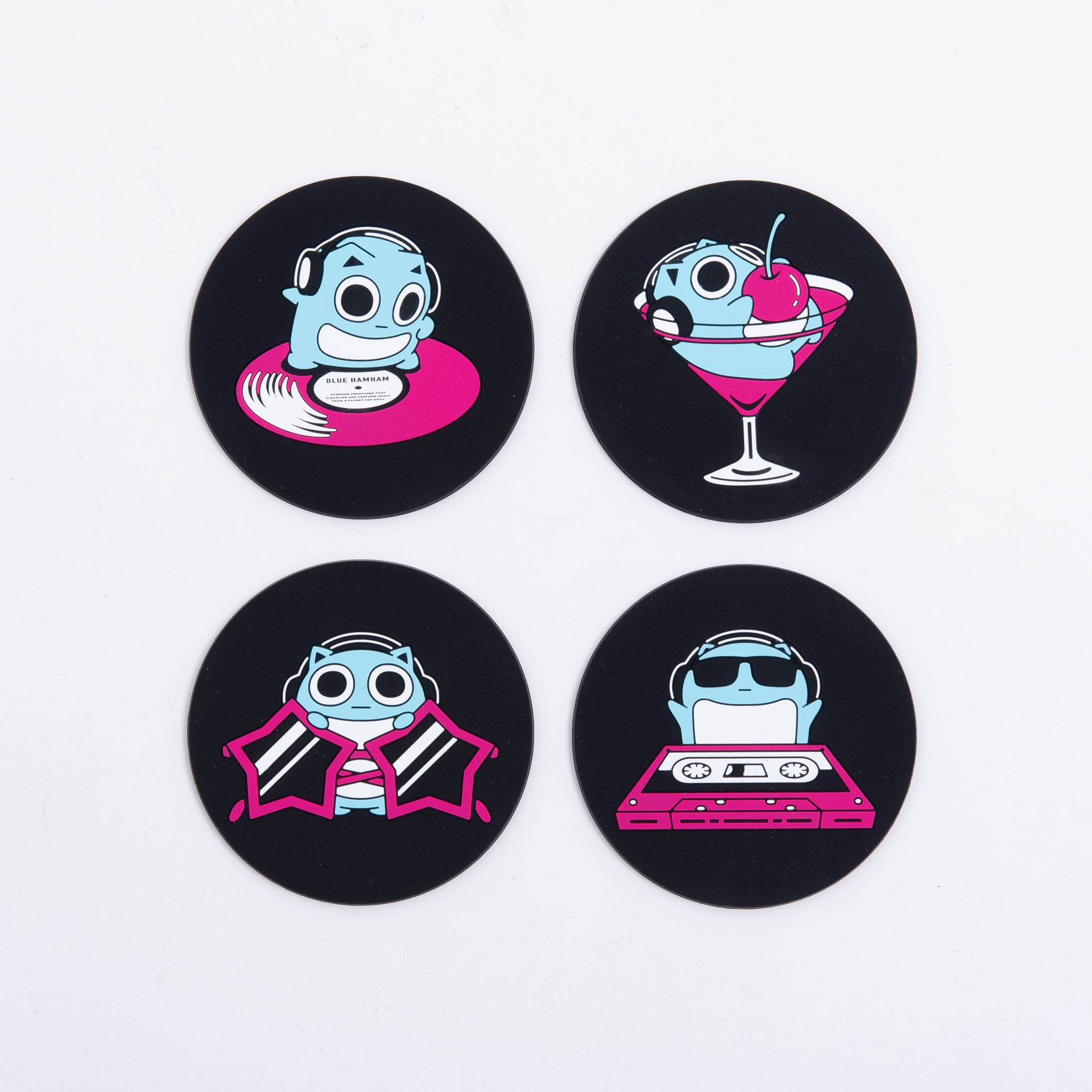 TwitterやTikTokなどSNSでのアニメーション総再生数が3億回を超え、海外にも多くのファンを抱える宇宙ハムスターの4兄弟「ブルーハムハム」が、全国のHMVに初上陸いたします。人々が寝静まった後、「ブルーハムハム」たちが小さなパーティーを楽しむ様子を描いた新作イラスト「Night Club」シリーズを使用した、アクリルキーホルダー、ラバーコースター、フレグランスジェルなど、全10アイテムの新商品が登場いたします。
