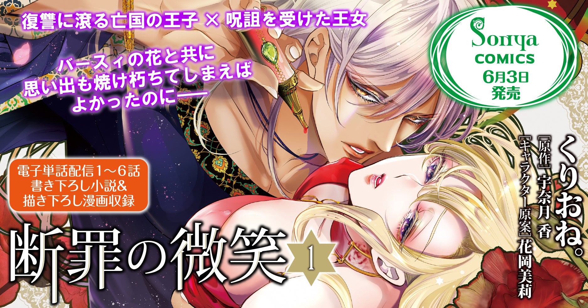 『ソーニャ文庫』の人気作コミカライズ『断罪の微笑1』が6月3日(金)に全国書店にて発売。
