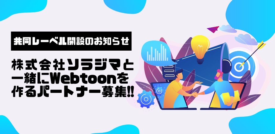 株式会社ソラジマではWebtoonを共同制作する共同レーベル(以後、ソラジマパートナーシップ)を発表します。また、本日より参画頂けるパートナー企業様を募集致します。