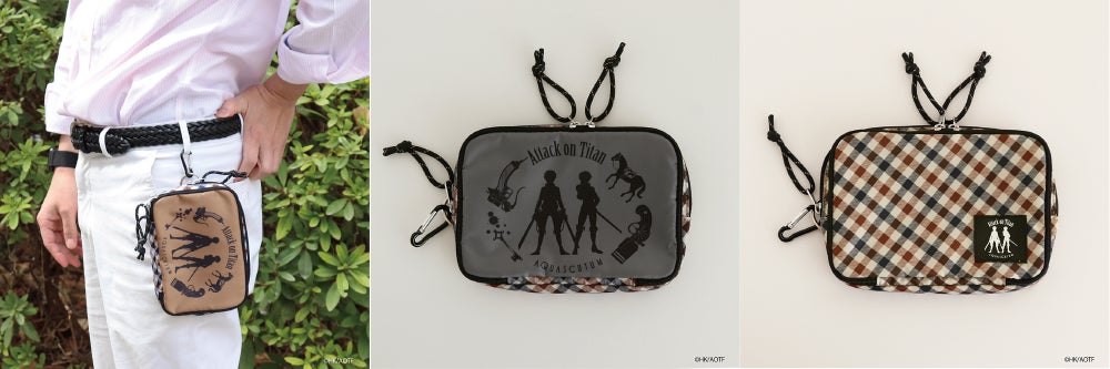 収納スペース豊富なコンパクトポーチです。『進撃の巨人』 『アクアスキュータム』両方のファンに響くようなデザインに仕上げています。