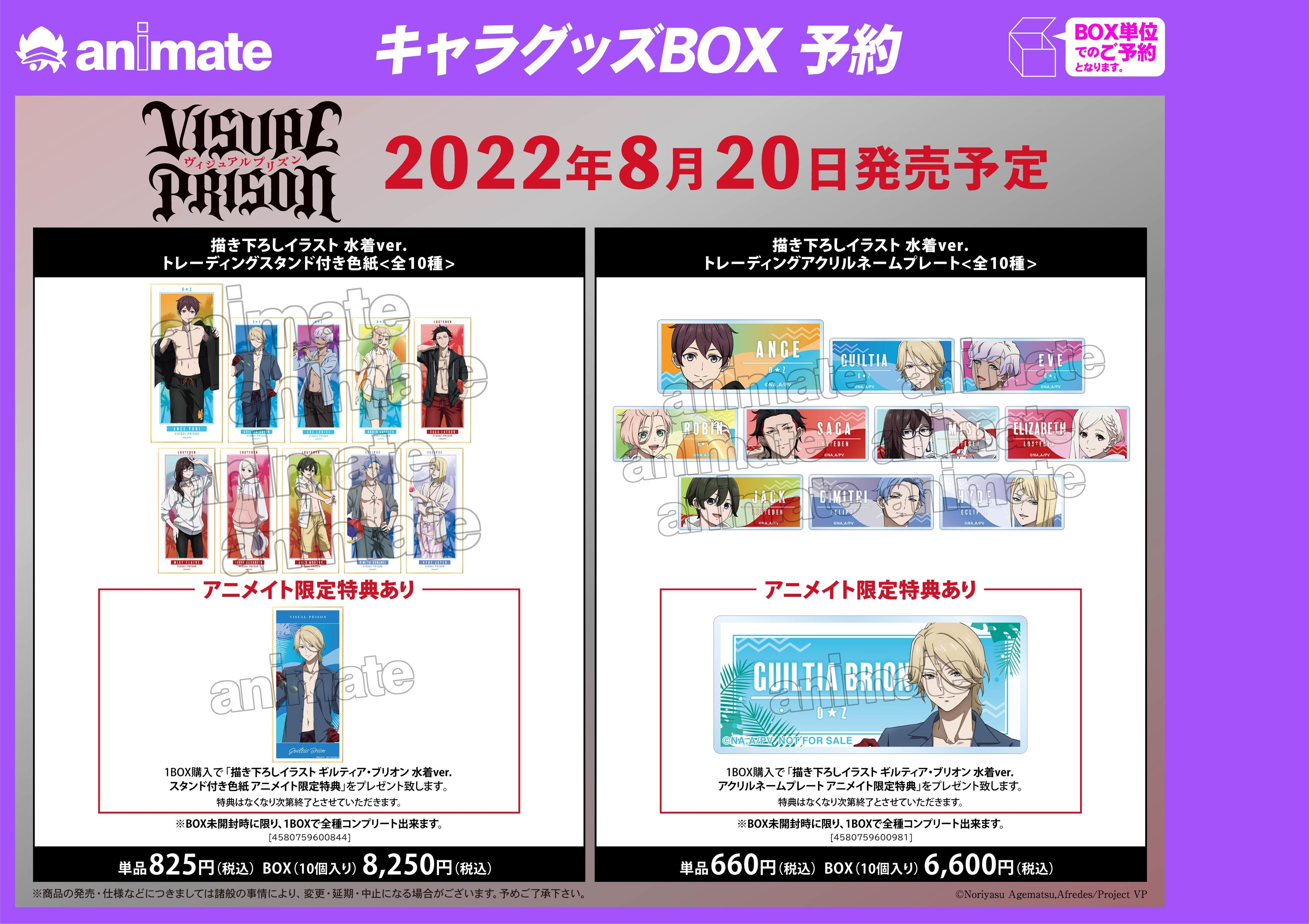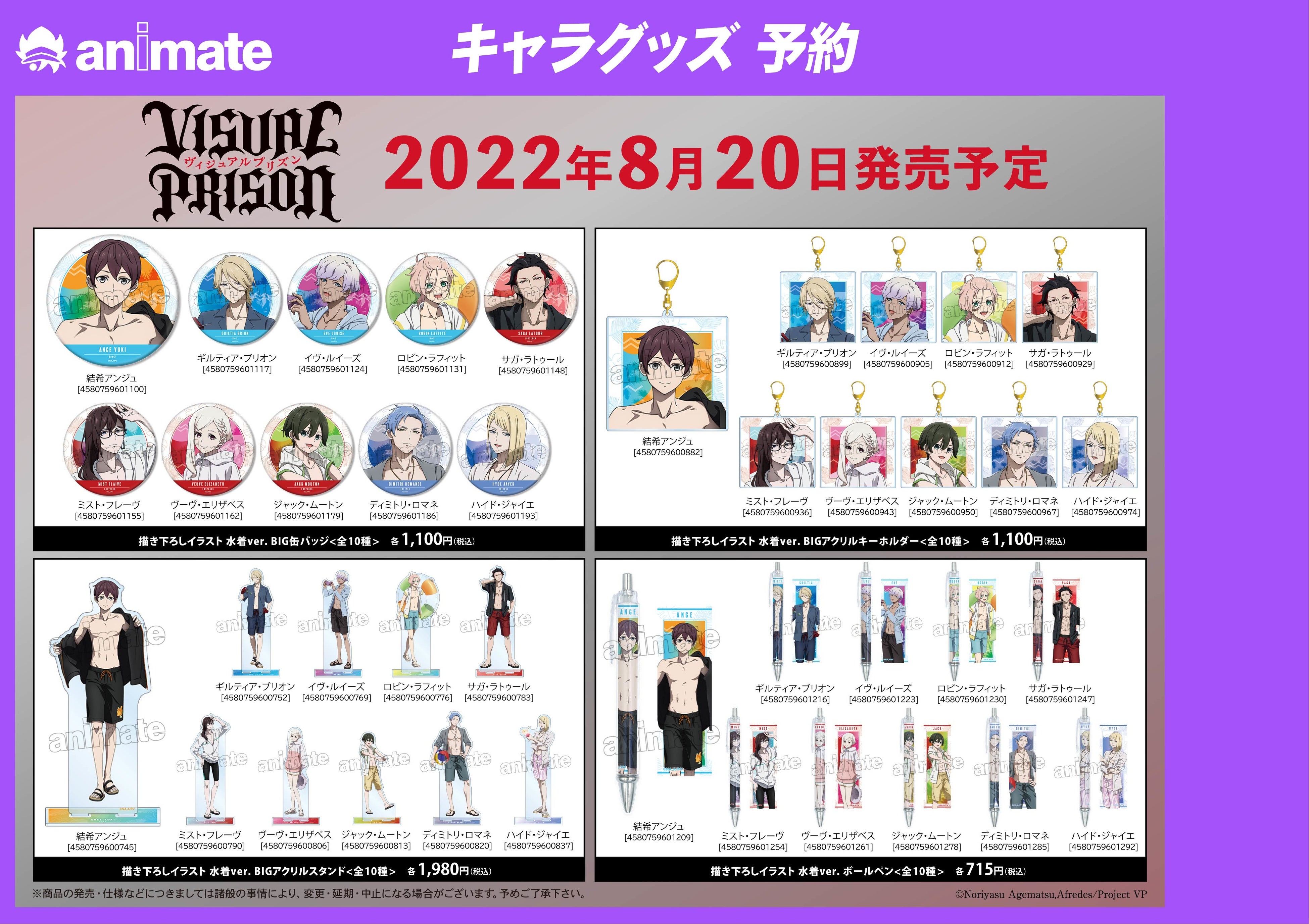 2022年8月20日(土)よりアニメイト対象店舗にて「ヴィジュアルプリズン」アニメイトフェアの実施が決定いたしました。