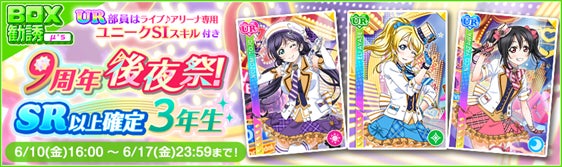 - 9周年後夜祭!SR以上確定BOX勧誘〜μ’s〜3年生
