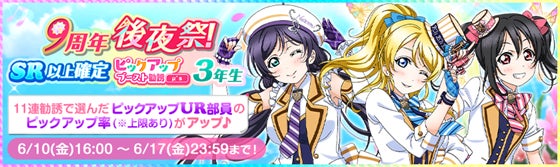 - 9周年後夜祭!SR以上確定ピックアップブースト勧誘〜μ’s〜3年生