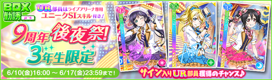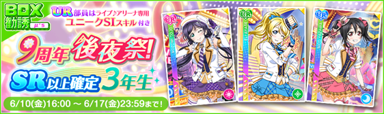 - 9周年後夜祭!SR以上確定BOX勧誘〜μ’s〜3年生