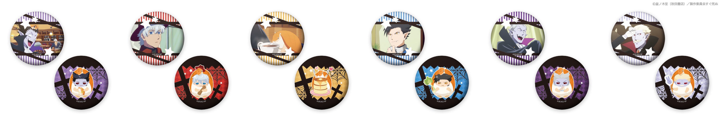「吸血鬼すぐ死ぬ スペシャルくじ」は、描き起こしミニキャラクターのイラストを使用した「ダイカットクッション」や「アクリルスタンド」など、ここでしか手に入らない商品をご用意しました。描き起こしミニキャラクターはアルマジロのジョンの着ぐるみを着たかわいいイラストになっています。そのほか、アニメの場面写真を使用した缶バッジやL版ブロマイドもラインナップされています。