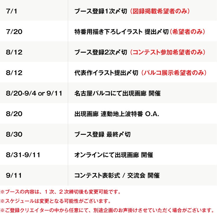出展登録後のスケジュール