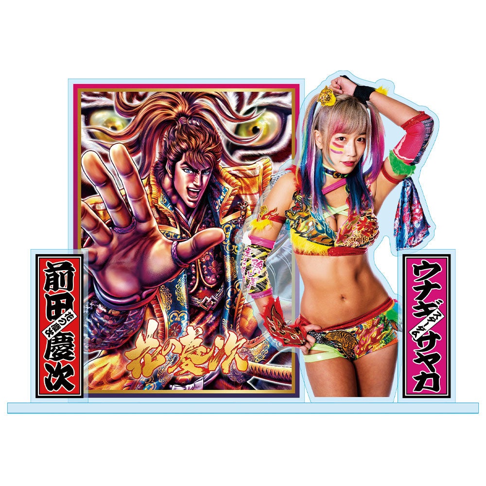 ウナギ・サヤカと後ろに堂々と佇む慶次の世紀のW傾奇者アクリルスタンド。