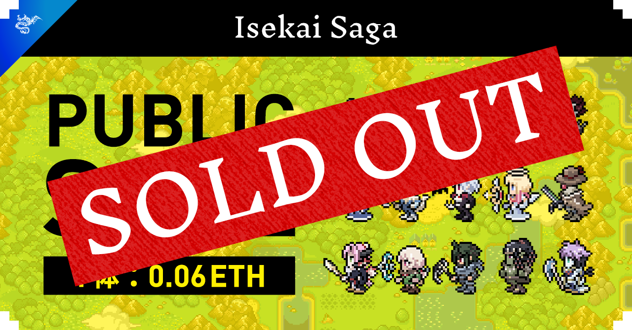 株式会社THE BATTLE(本社:東京都中野区、代表取締役:佐々木清龍、以下当社)は、イーサリアムメインネット上のフルオンチェーンゲーム『Isekai Saga』で使用できる、キャラクターNFT が完売したことを発表しました。パブリックセールは6月10日(金)22時から始まり、30秒で1357体が売り切れ、前日のプライベートセールと合わせて6500体が完売しました。本NFT販売での売上は約360ETH(8,500万円)となります。